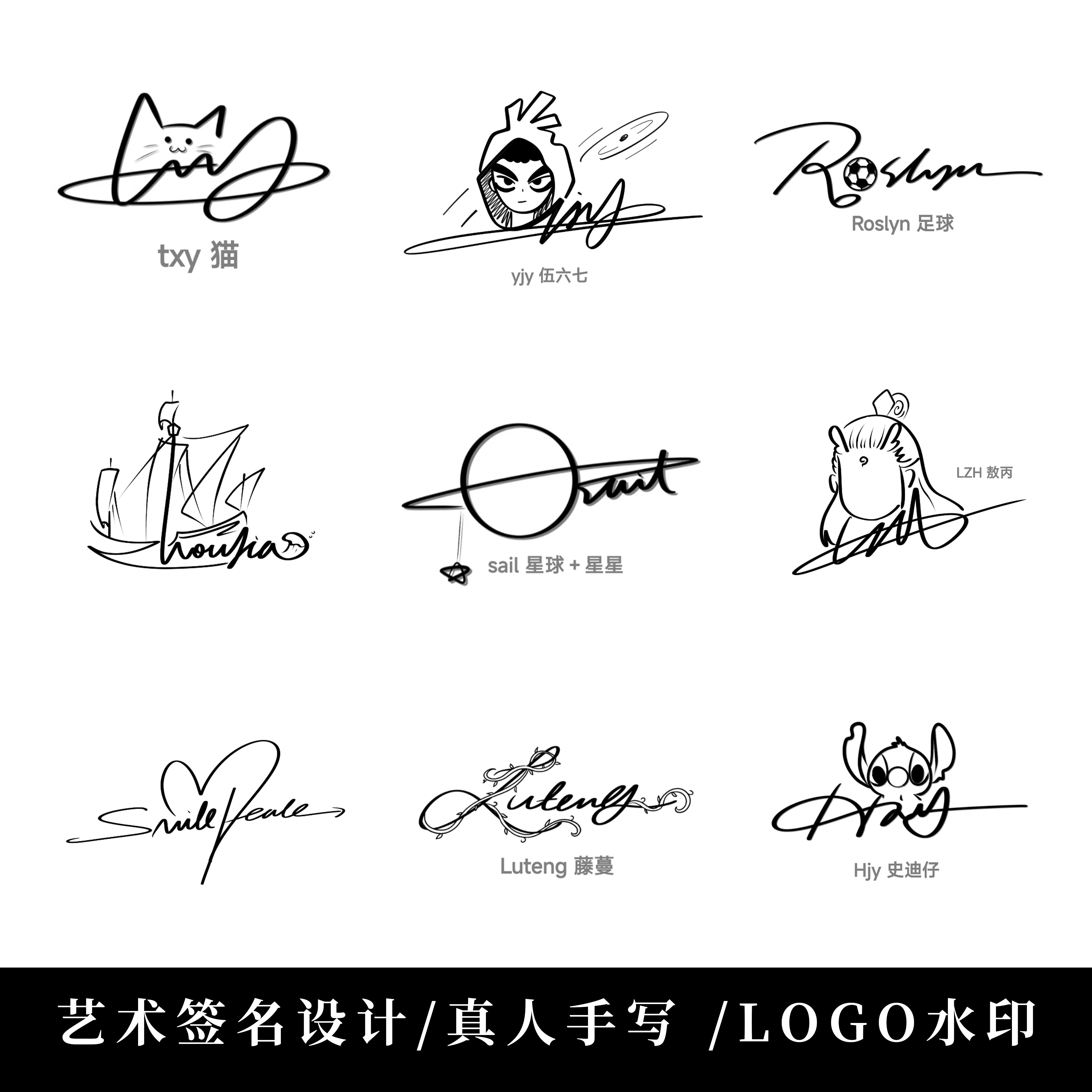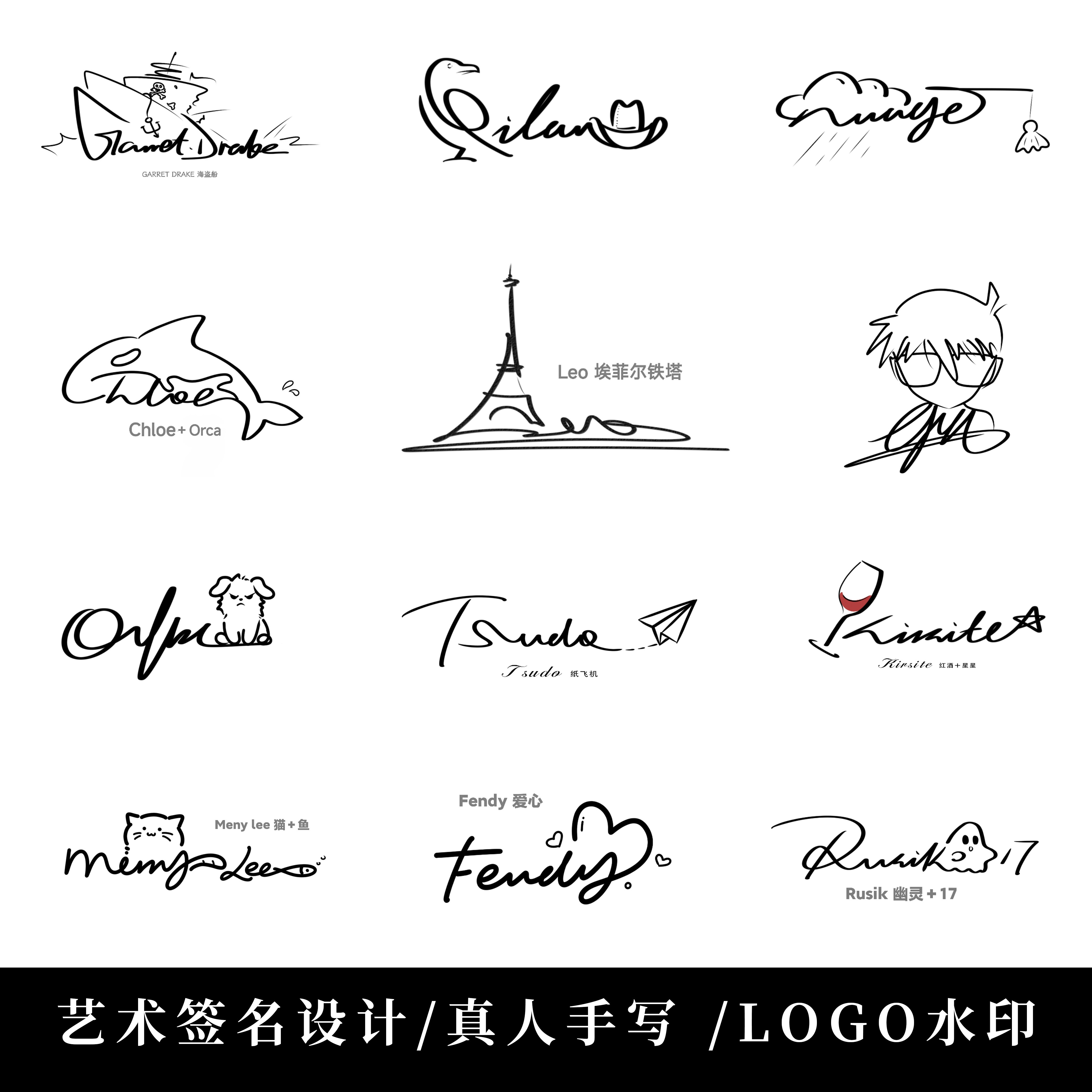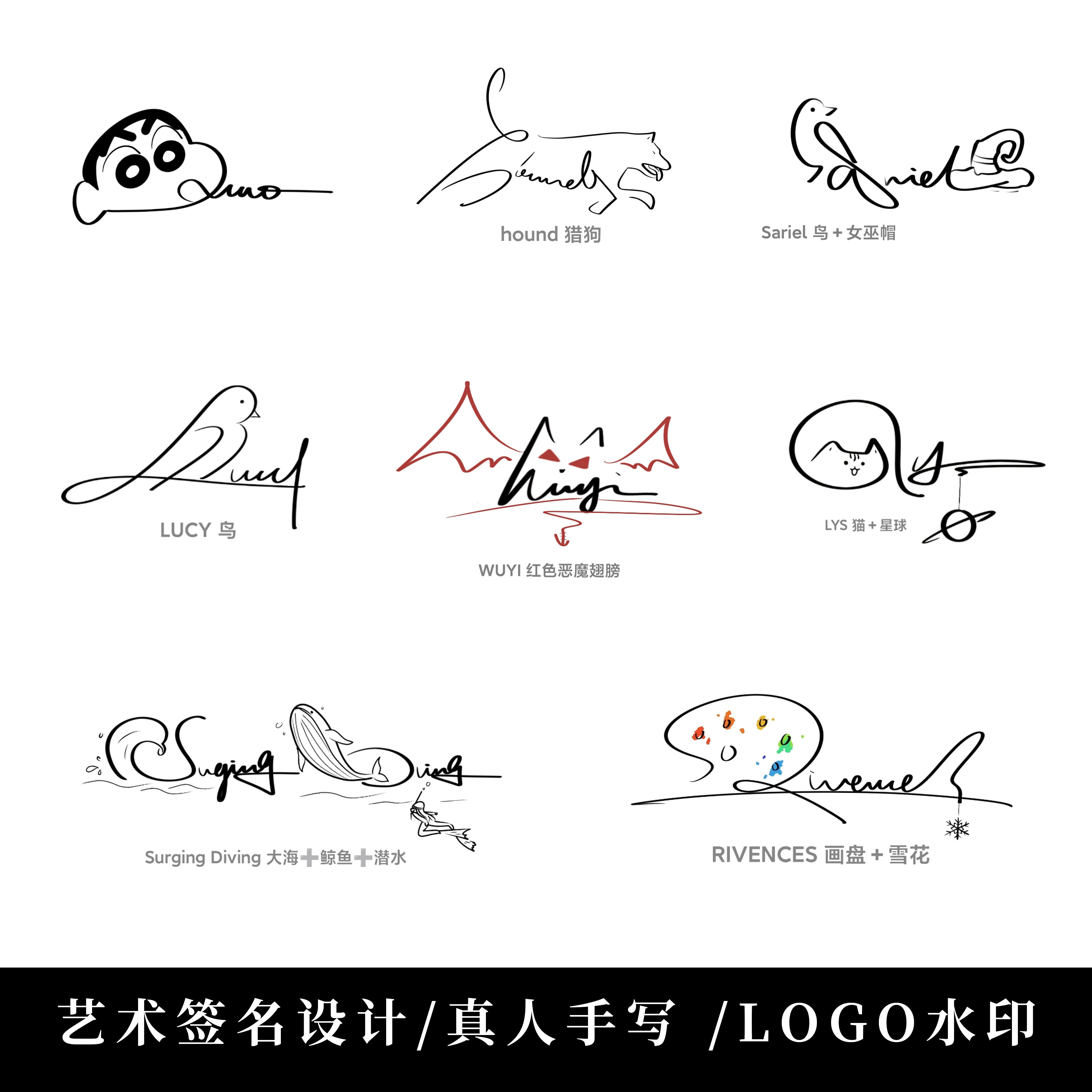 为您提供商品签名设计原创logo定制中英文字体动漫人物宠物卡通水印 手写个性的详细介绍,