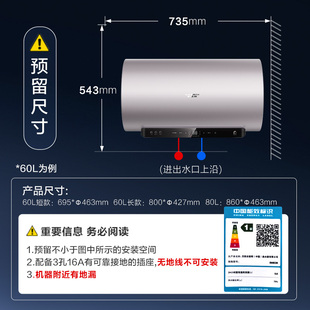 AO史密斯金圭银河电热水器60 100升ED8免换镁棒免清洗以旧换新