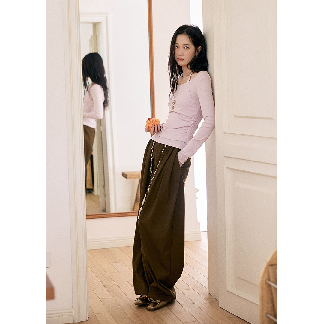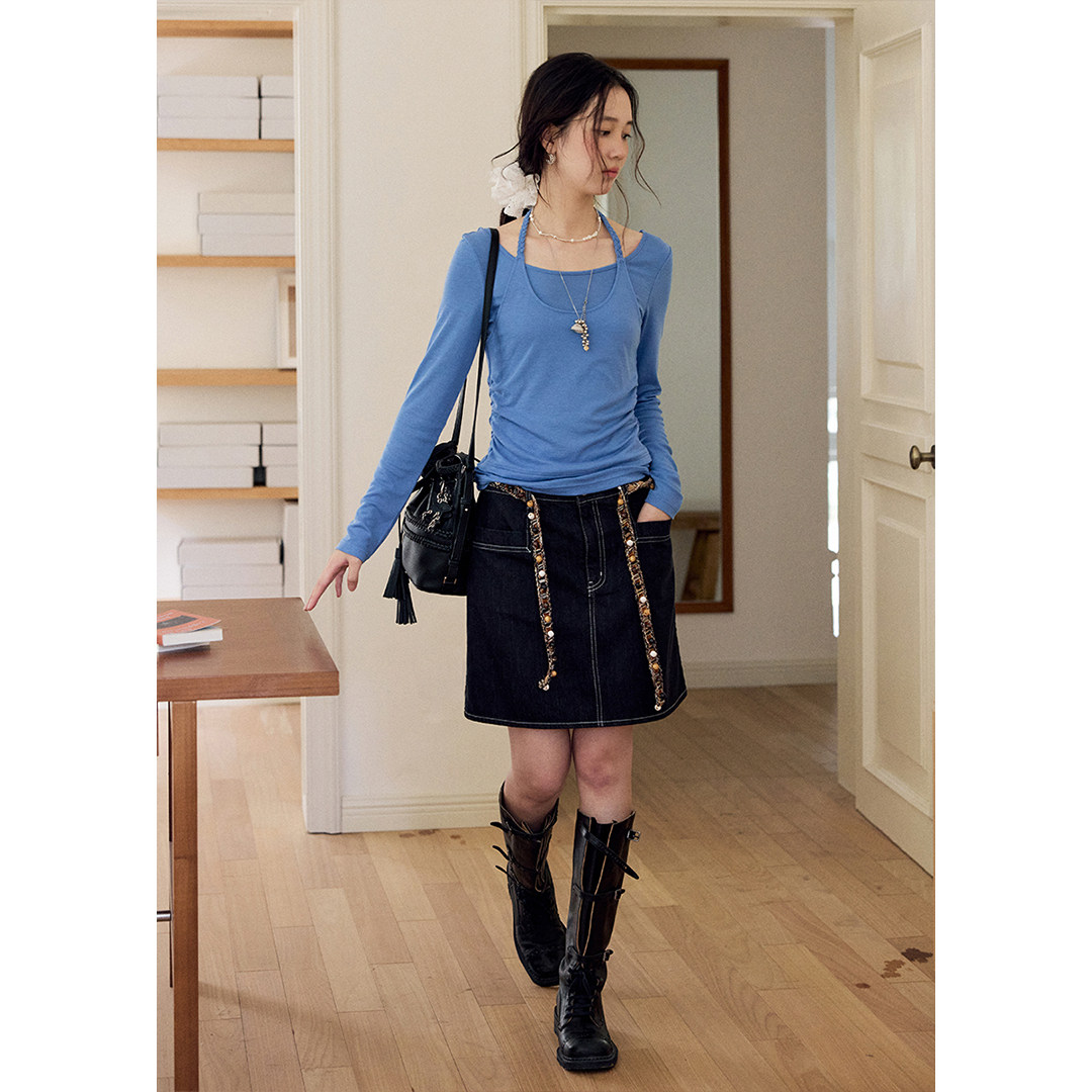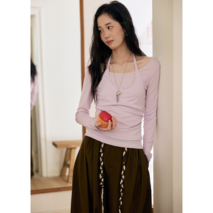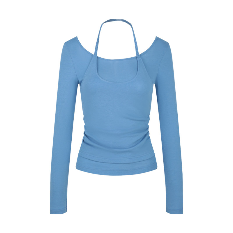 t恤女外穿显瘦上衣针织打底衫 春 假两件挂脖蓝色长袖 BLUEerror修身