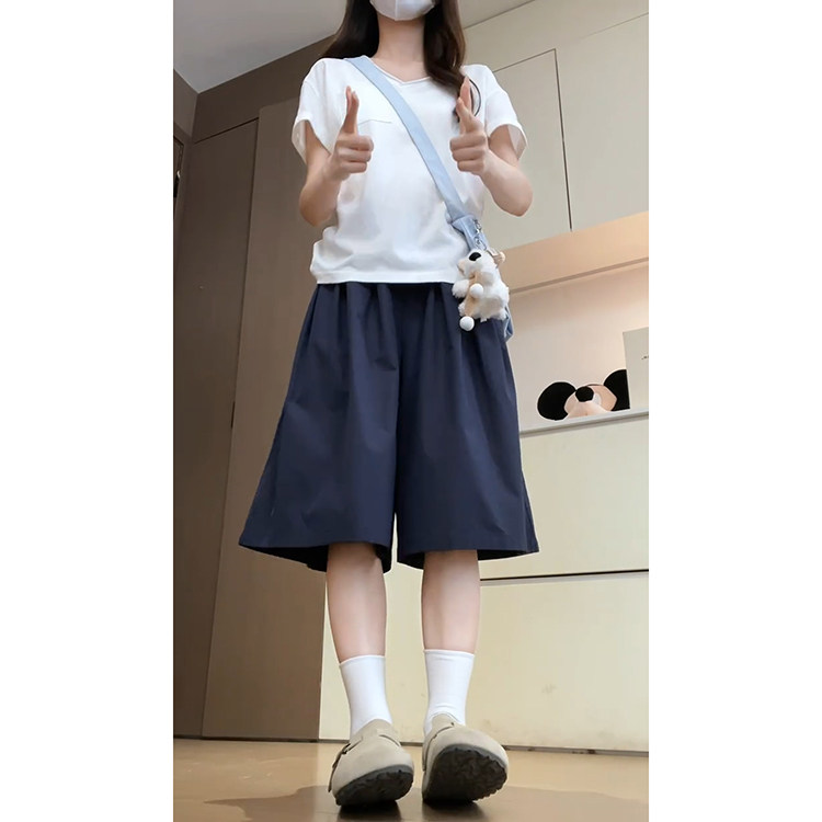 为您提供商品简约时尚 藏青色复古高腰阔腿裙裤 女夏季 2026新款 宽松舒适七分短裤的详细介绍,