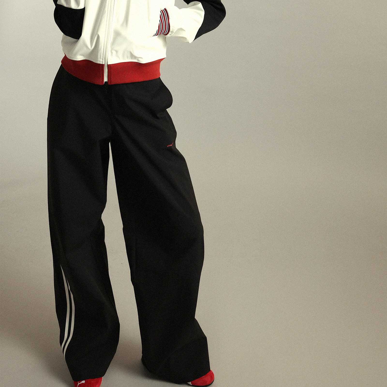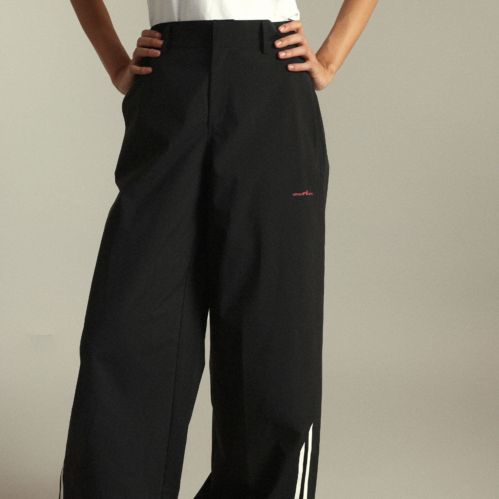 UMAMIISM有茂密声秋季 条纹直筒黑色休闲裤 运动长裤 宽松 速干伞兵裤由