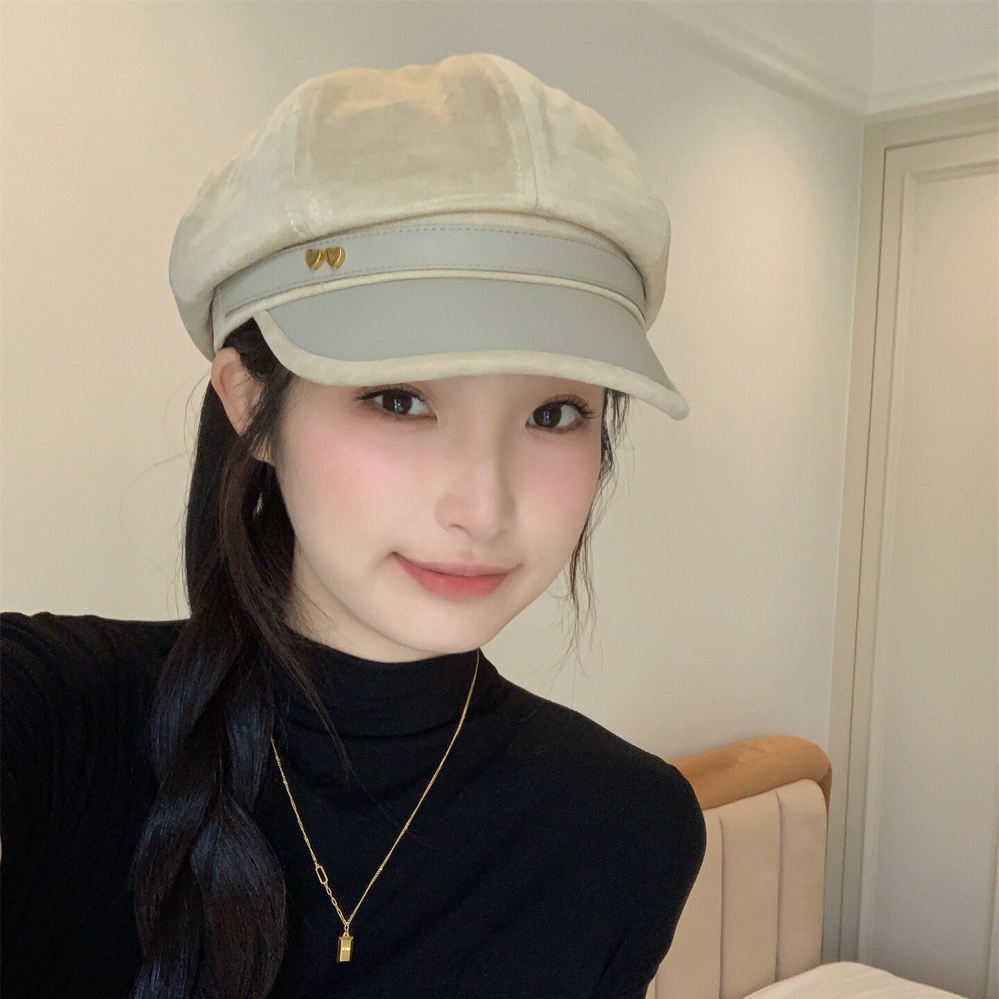 秋冬麂皮绒皮质贝雷帽女ins韩系复古气质时尚 八角帽 新款 心动讯号由