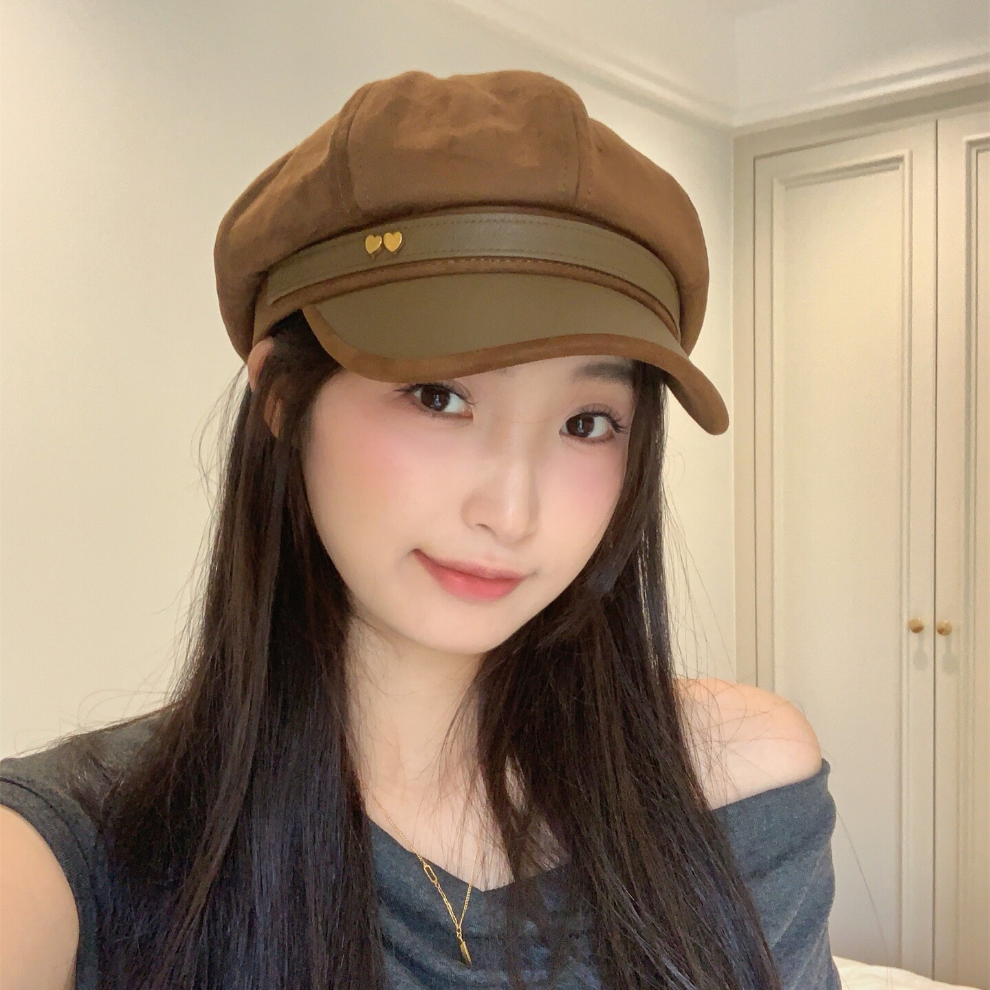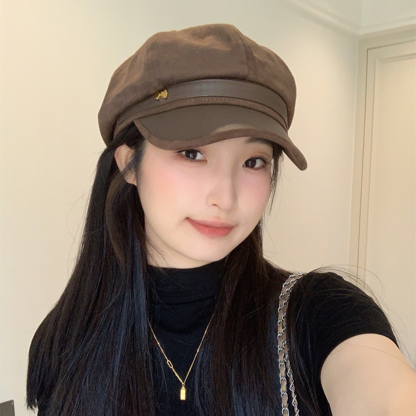 秋冬麂皮绒皮质贝雷帽女ins韩系复古气质时尚 八角帽 新款 心动讯号