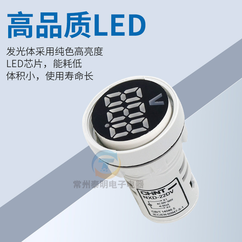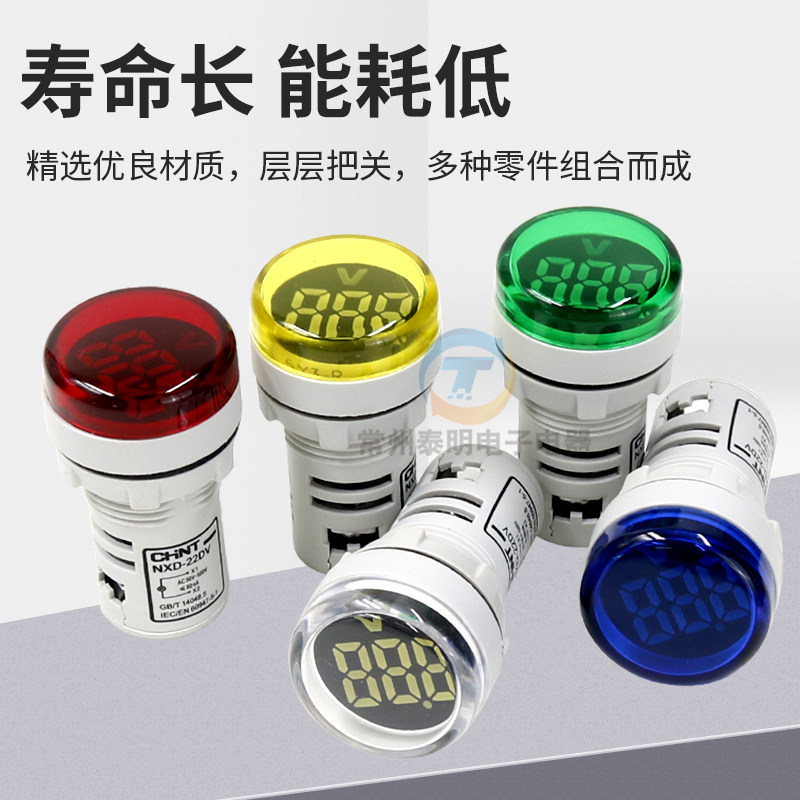 正泰LED电源指示灯信号灯NXD 380V 22DV交流AC数显220V电压表22mm