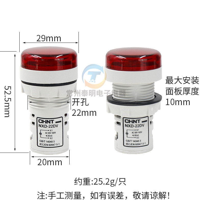 正泰LED电源指示灯信号灯NXD 380V 22DV交流AC数显220V电压表22mm由