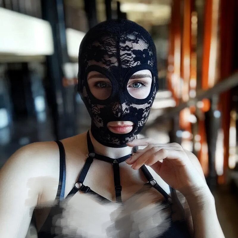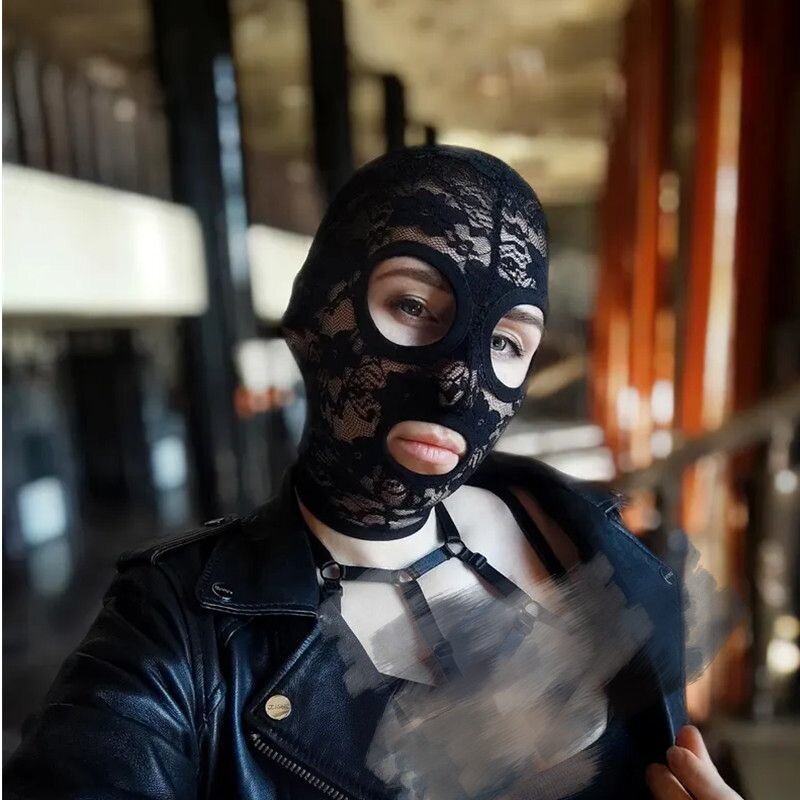 蕾丝花纹情趣头套弹力面罩开小嘴全包情感面具cos性感隐私女生戴