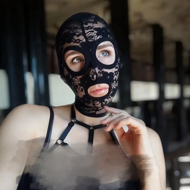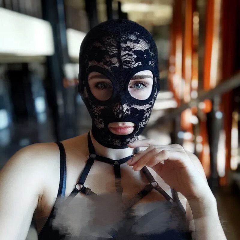 蕾丝花纹情趣头套弹力面罩开小嘴全包情感面具cos性感隐私女生戴由