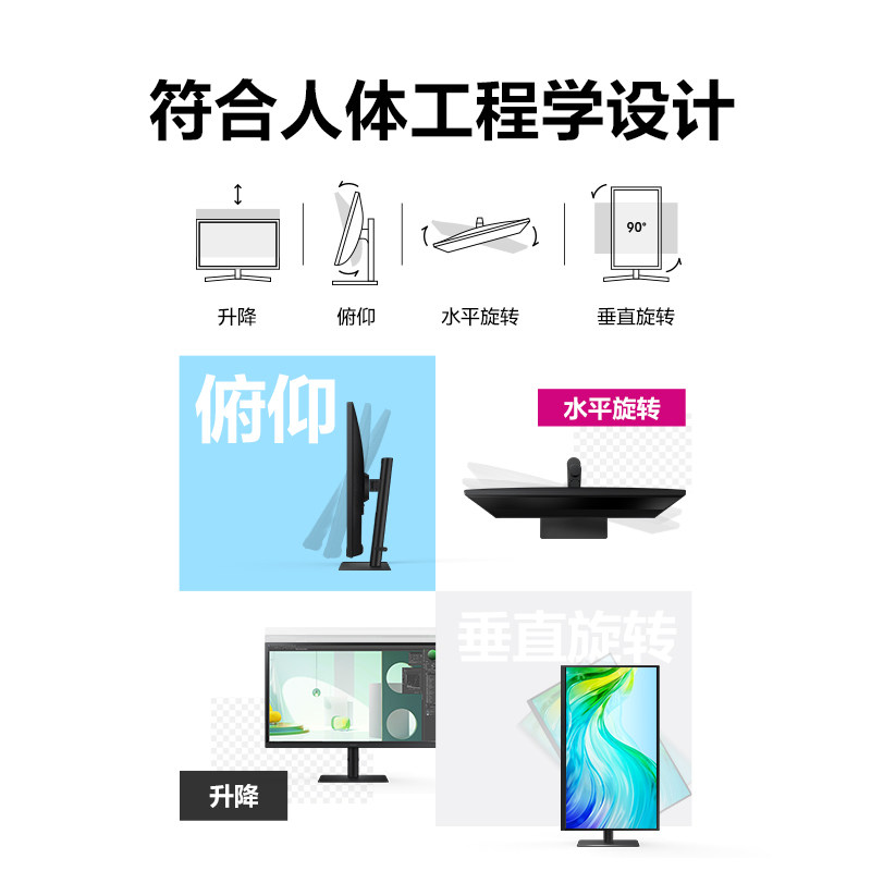 三星显示器27英寸IPS办公设计剪辑2K高清升降旋转竖屏S27F610EAC由