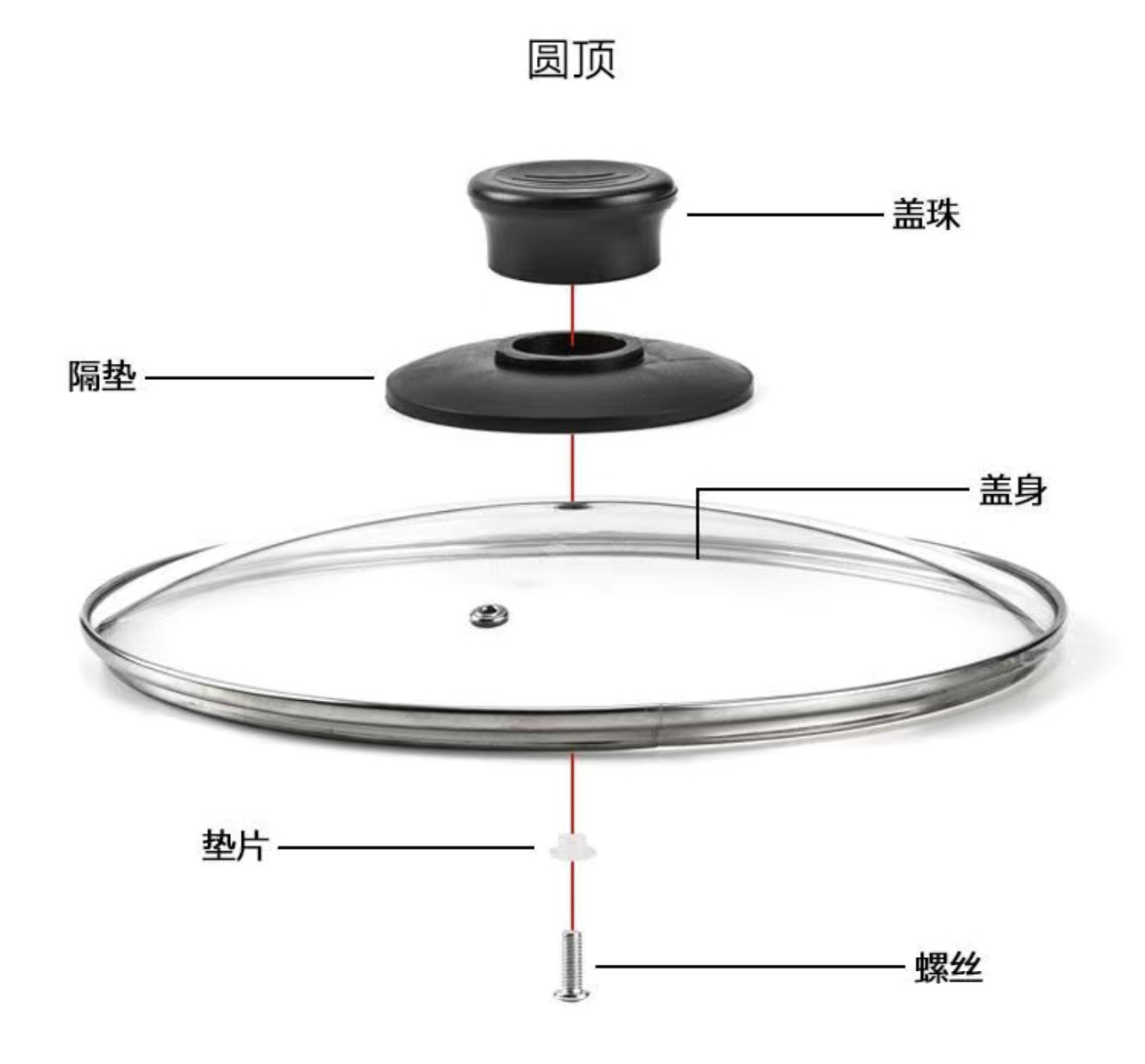 把手不锈钢硅胶防烫耐高温锅盖帽提手玻璃头配件 通用锅盖上面