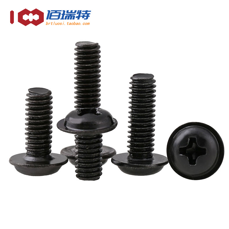 6x8x10x12x16黑色圆头十字带垫带介电脑机箱小螺丝钉 M2M2.5M3M4由