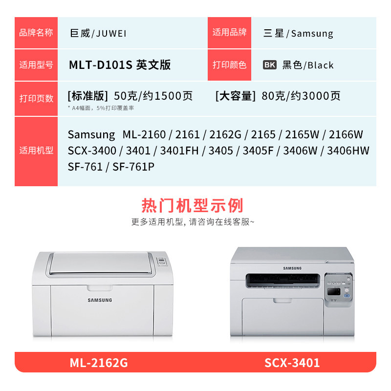 为您提供商品D101S碳粉盒101 3405f晒鼓碳粉 2165打印机墨盒scx3400一体机粉盒MLT 3405硒鼓ml2160 英文版 适用三星scx的详细介绍,