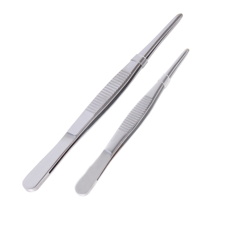不锈钢镊子圆头带齿敷料镊子加厚加硬12.5 30CM
