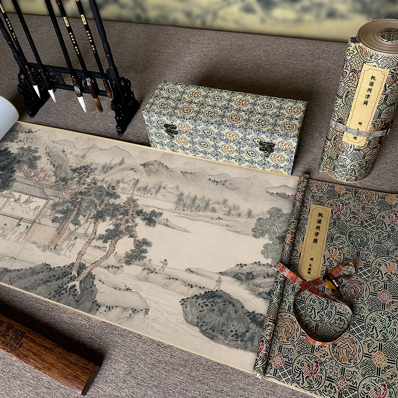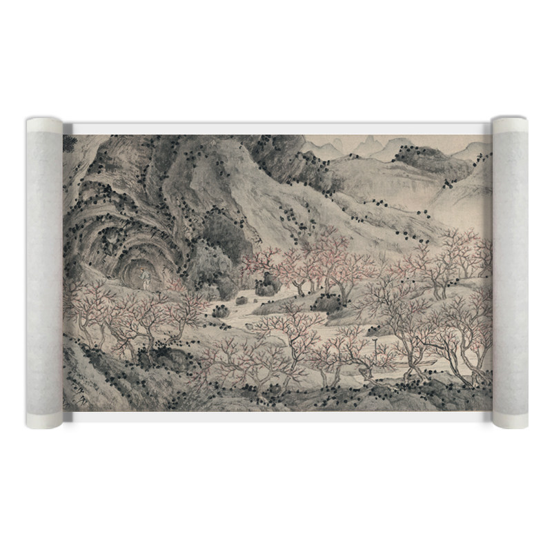明 桃源问津图纸本原版 高清微喷复制客厅背景墙装 饰风景画 文徵明