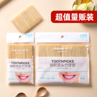 茶花牙签家用高档牙签盒便携竹制一次性牙签双头剔牙棒商用牙签筒