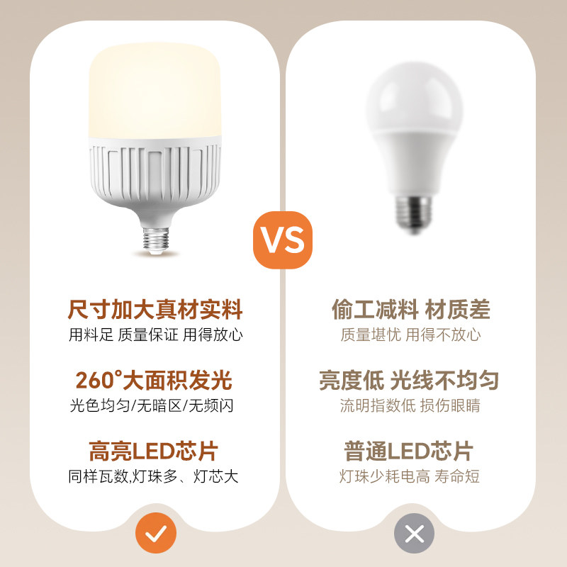 led灯泡家用E27螺口节能灯白光超亮室内护眼无频闪大功率照明球泡