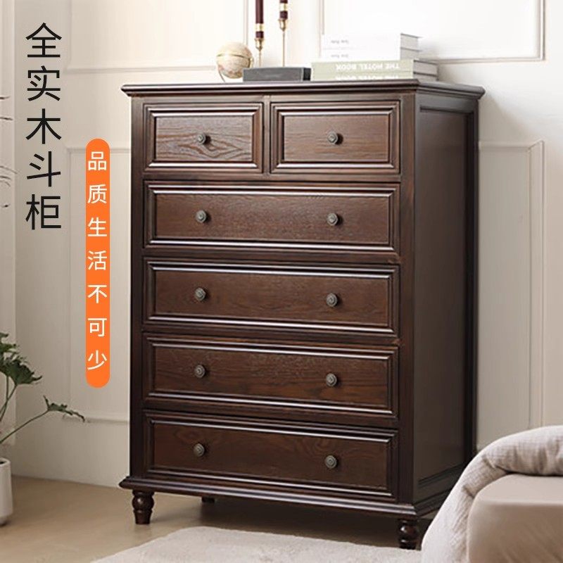 实木五斗七八九斗柜卧室靠墙轻奢抽屉柜子床尾收纳柜客厅复古 美式