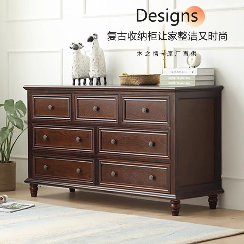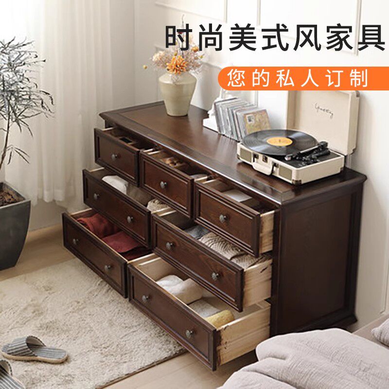 美式 复古轻奢卧室收纳储物柜客厅抽屉柜木质九斗橱 实木五斗柜法式