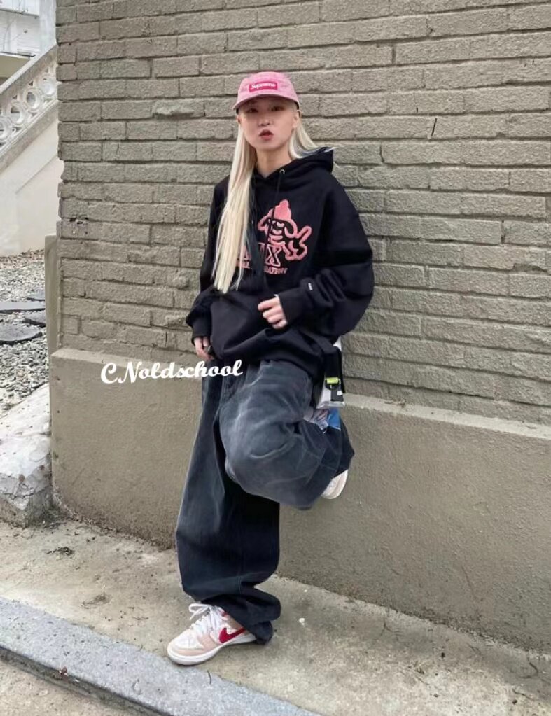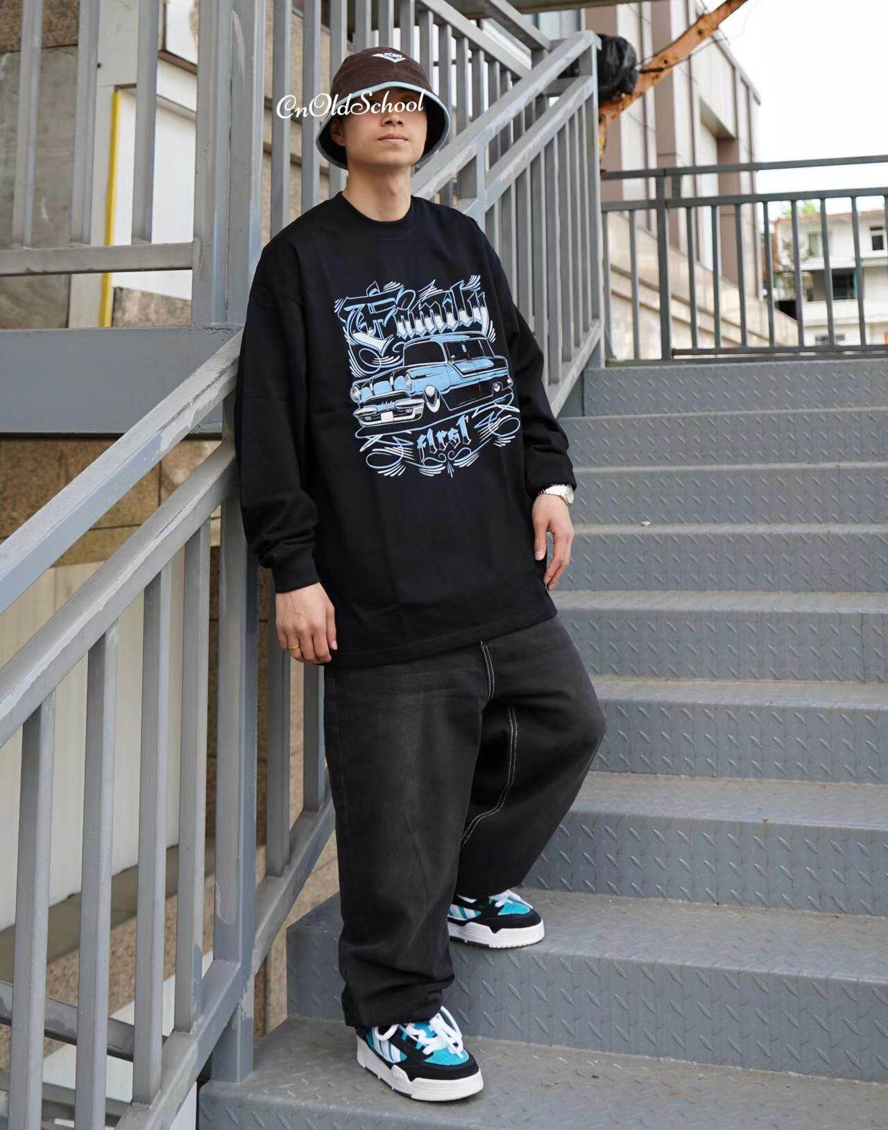 街舞oversize舒适hiphop黑色直筒牛仔裤 老派大码 oldschool经典由