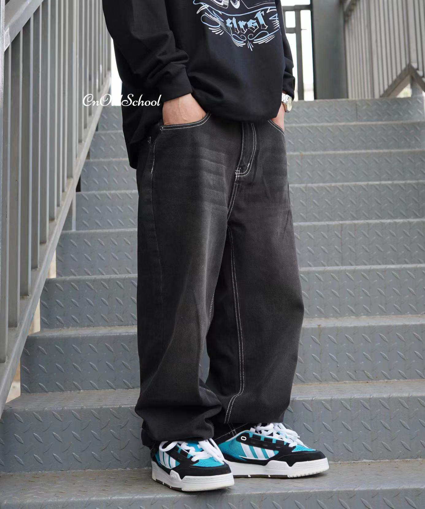 街舞oversize舒适hiphop黑色直筒牛仔裤 老派大码 oldschool经典