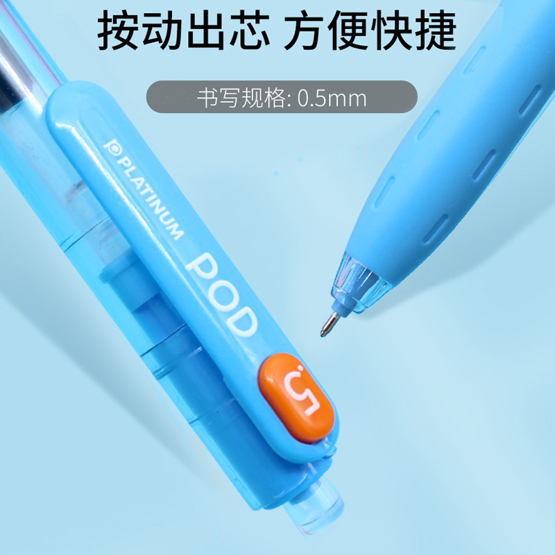 签字笔 日本白金PLATINUM小爱豆POD中性笔水笔0.5走珠笔黑色学生用大容量全针管考试水性笔彩色可换替芯按压式
