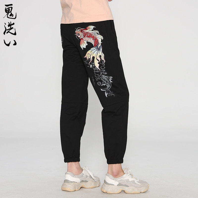 为您提供商品ONIARAI N540095 鬼洗春夏泥棒蓝鲤鱼印绣花女士休闲针织长裤的详细介绍,