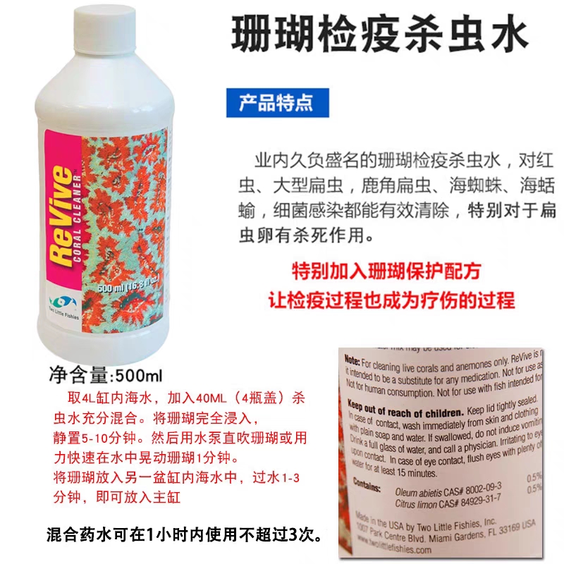 海葵检疫SPS检疫水杀扁虫 两只小鱼珊瑚检疫杀虫水美国两只小鱼软