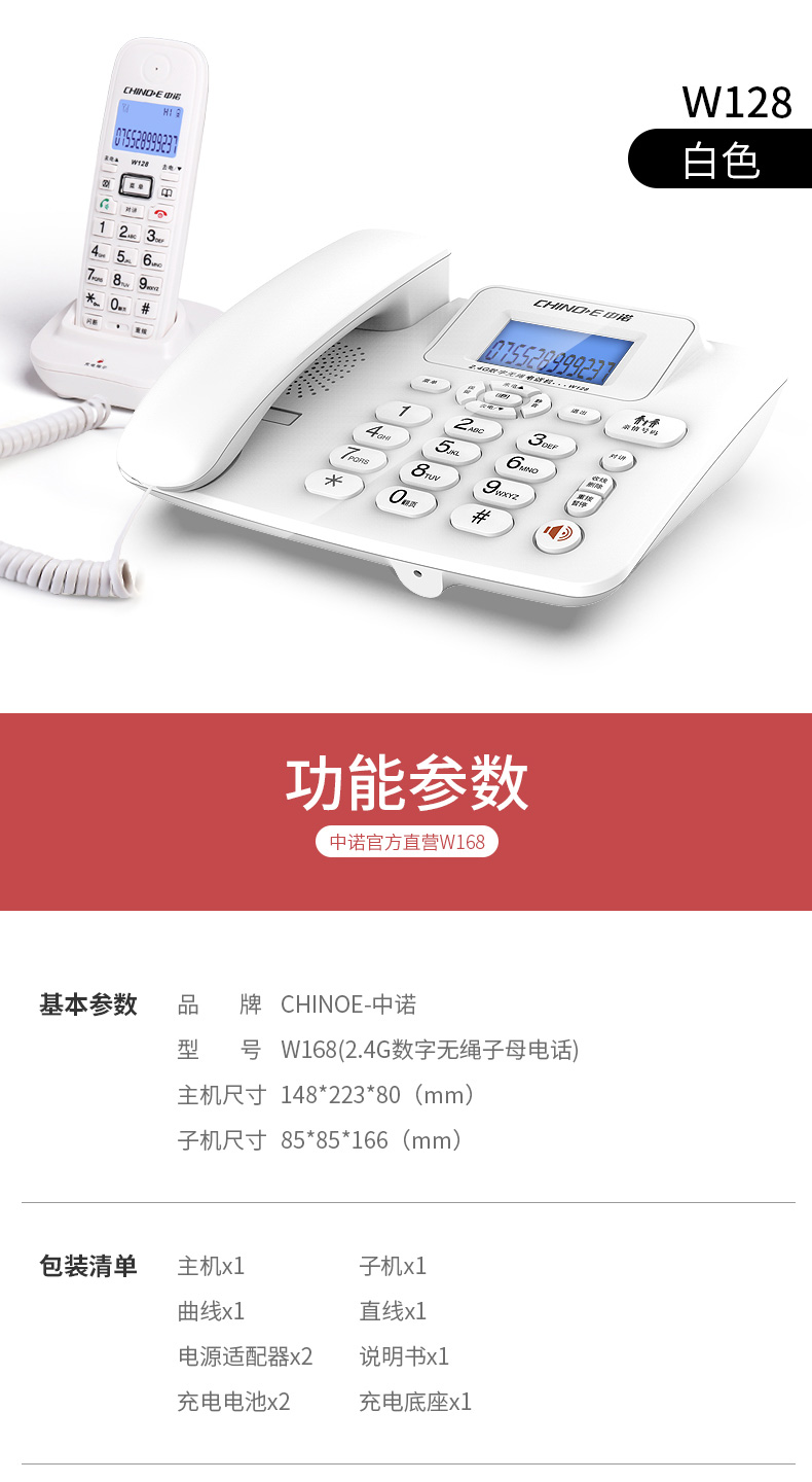 为您提供商品办公家用无绳电话座机子母机一拖一拖二 中诺W128数字无绳电话机的详细介绍,