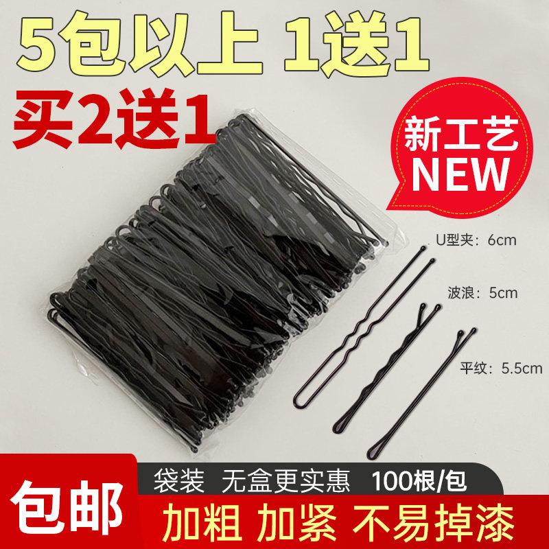 发饰卡 发夹一字夹U型夹加粗加紧插针黑色简约基础刘海侧边夹袋装