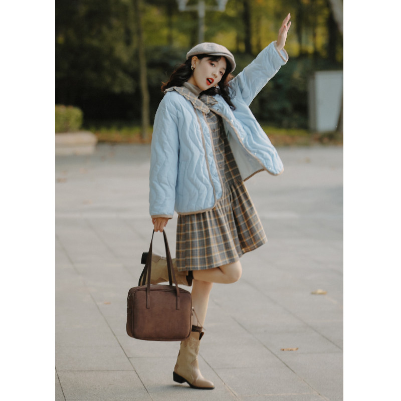 为您提供商品花吉B287灰杏色日系复古撞色可拆卸灯芯绒领羽绒服女2026新款 冬季的详细介绍,