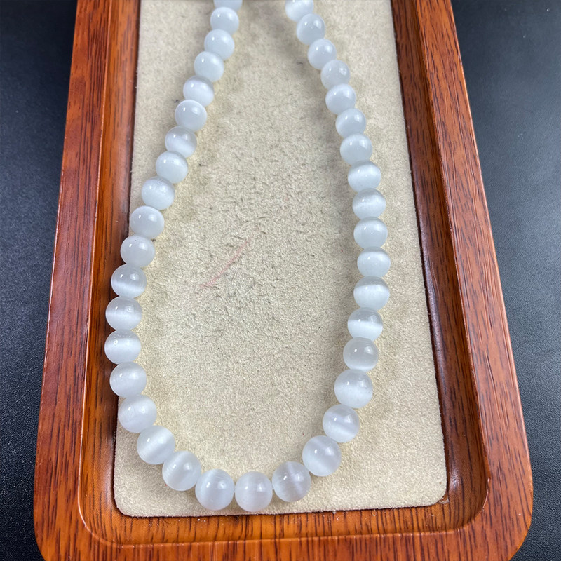 为您提供商品38厘米长半成品DIY手工串珠 好品质8mm白猫眼石圆珠散珠一条47颗的详细介绍,