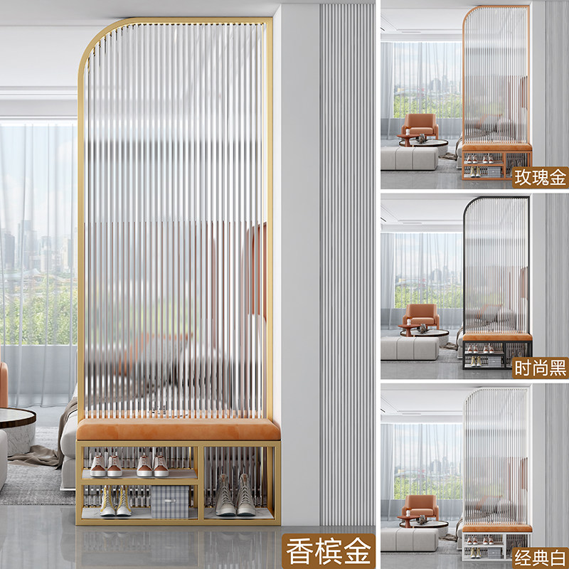 为您提供商品柜凳铁艺不锈钢 轻奢长虹玻璃隔断玄关入户门客厅屏风网红一体换鞋的详细介绍,
