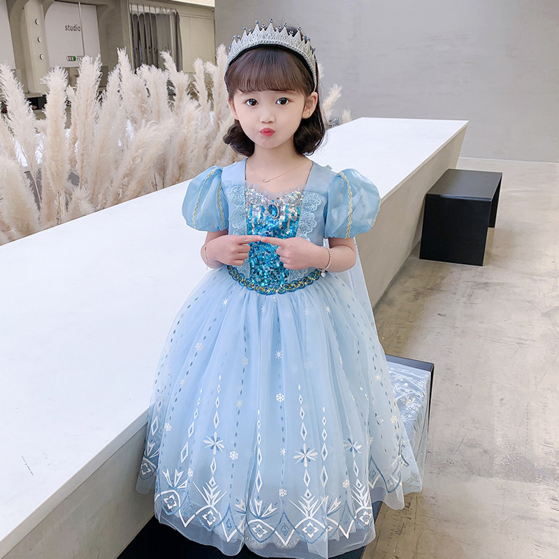 新款 生日连衣裙 夏季 冰雪奇缘白雪艾莎公主裙子女童迪士尼爱莎春装