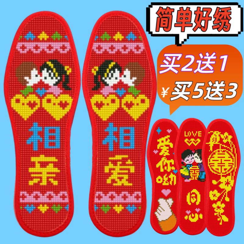 新款 垫自己绣印花半成品带针线纯棉男女结婚用品花草系列 十字绣鞋由