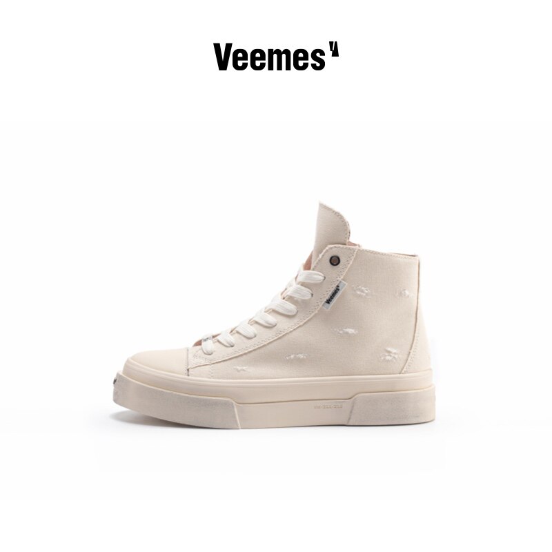 男女情侣厚底增高板鞋 帆布鞋 VEEMESRS001破坏做旧自然白高帮经典由