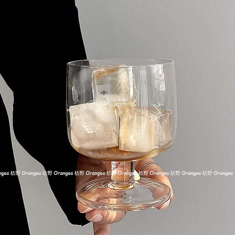Oranges 胖墩玻璃高脚杯冰拿铁咖啡杯饮品杯冷饮杯 小众复古设计款