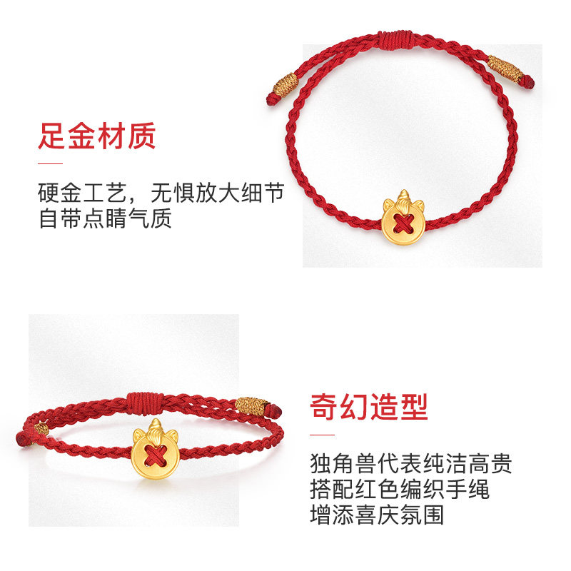 为您提供商品明牌珠宝硬金独角兽串珠t黄金幸福纽扣编织手绳足金手链AFP0674的详细介绍,
