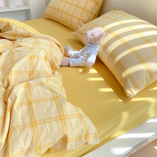 全棉水洗棉被套单件纯棉180cmx220cm黄色学生单人被罩150x200x230