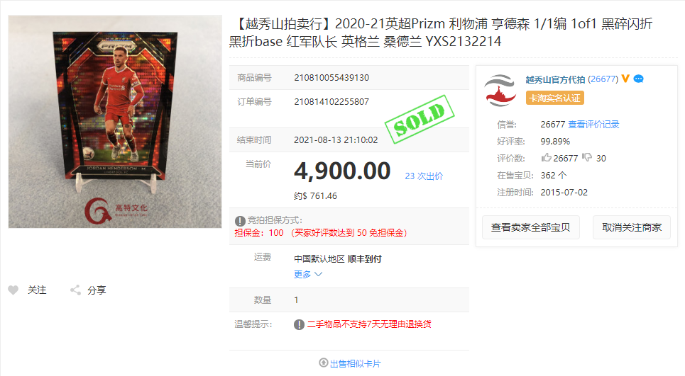 为您提供商品2020 21prizm利物浦队长亨德森1编黑折BASE 越秀山卡价书的详细介绍,