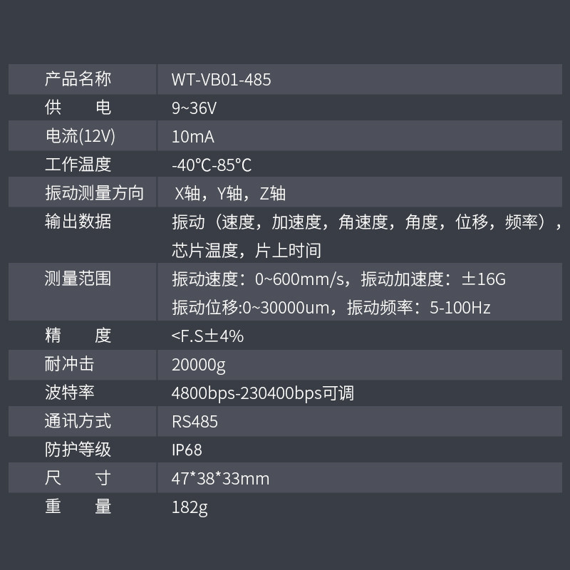 为您提供商品维特智能三轴位移速度幅度振幅振动传感器电机水泵震动监测防水的详细介绍,