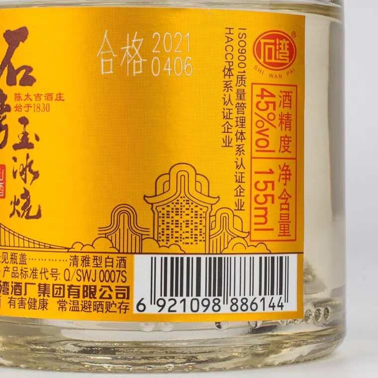 盒 瓶 广东石湾玉冰烧45度金标琥珀小酒155ml
