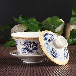 陶瓷白瓷功夫三才碗单个 盖碗茶杯茶碗大号茶具青花瓷泡茶碗套装