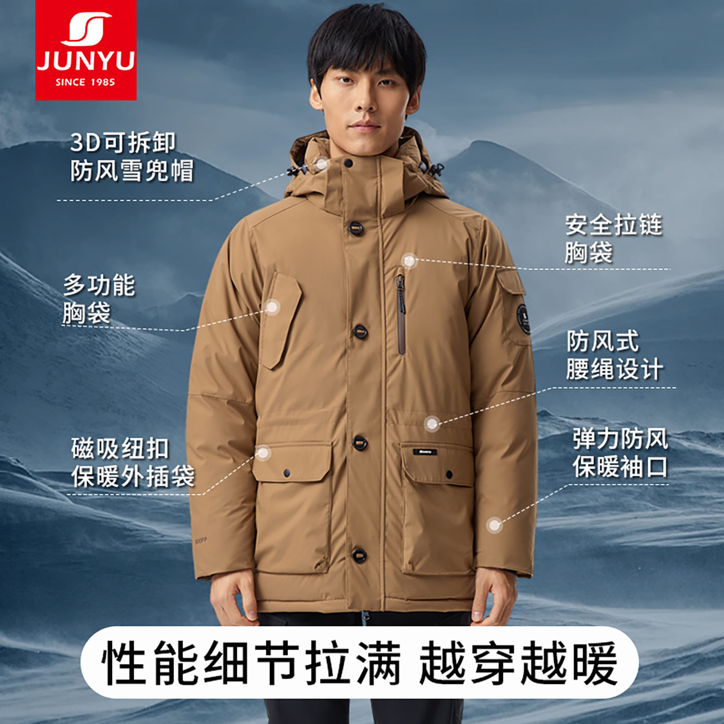 为您提供商品加厚保暖工装 派克羽绒服男159 冬季 君羽800蓬95绒子鹅绒服男中长款的详细介绍,