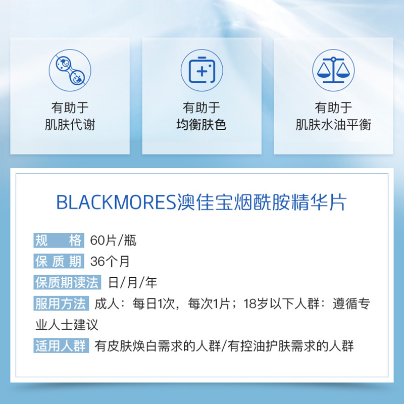 澳洲Blackmores澳佳宝烟酰胺高光片60粒500mg焕白小白丸 现货仓由