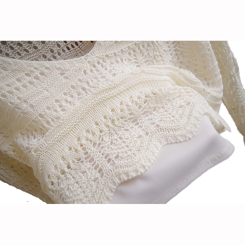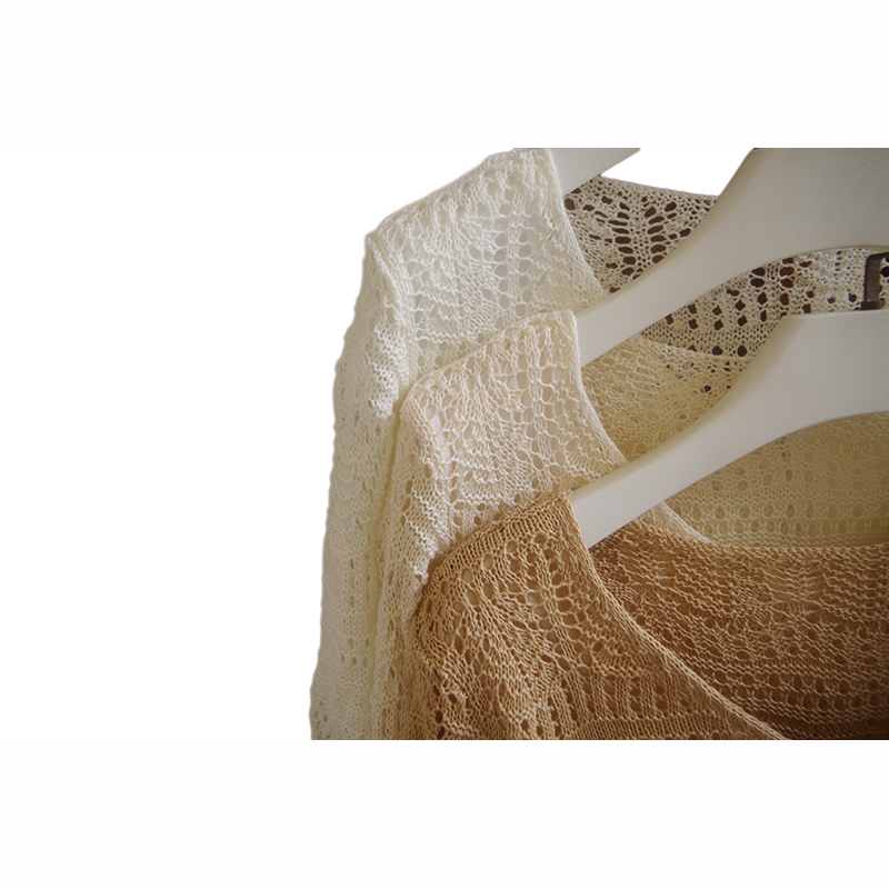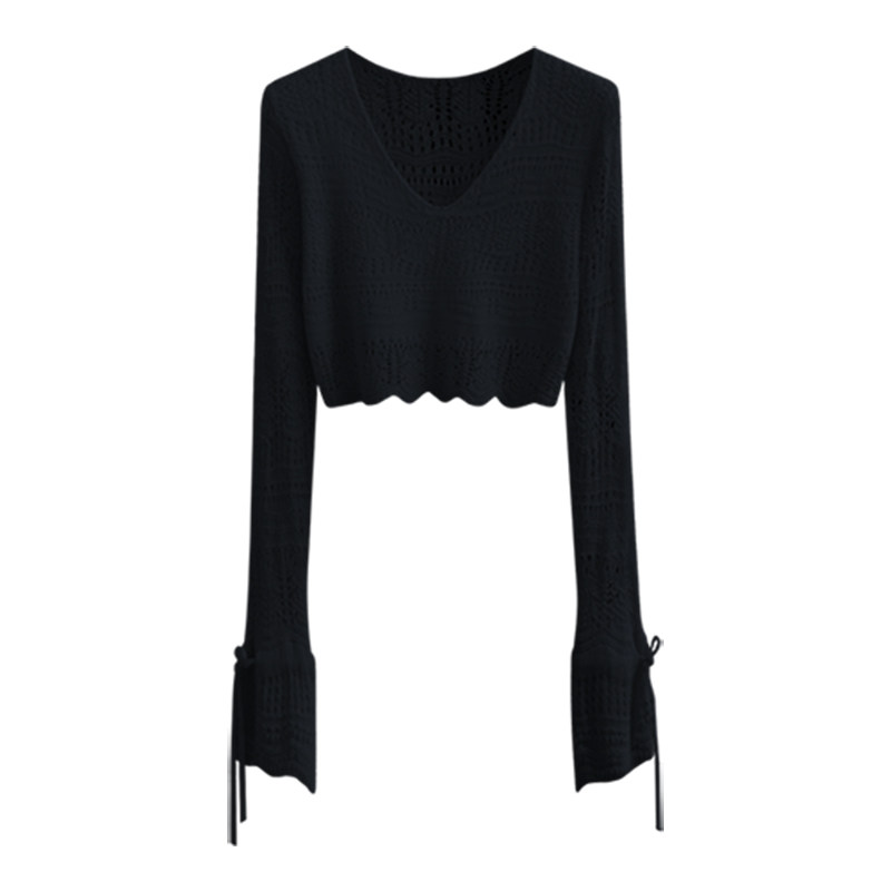 女显瘦喇叭袖 复古超短款 高腰配裙外搭罩衫 镂空针织衫 上衣 露脐长袖