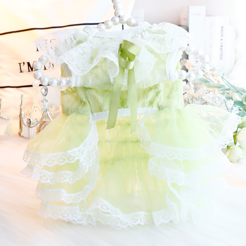 狗狗衣服春夏装 猫公主裙薄荷曼波婚纱蕾丝小型犬泰迪宠物5823 薄款由
