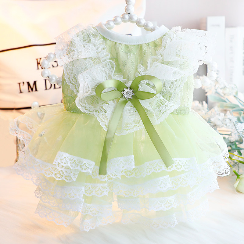 狗狗衣服春夏装 猫公主裙薄荷曼波婚纱蕾丝小型犬泰迪宠物5823 薄款