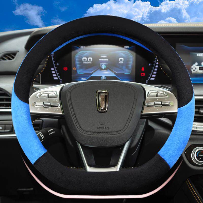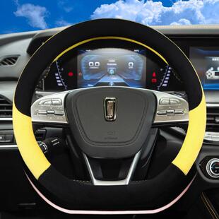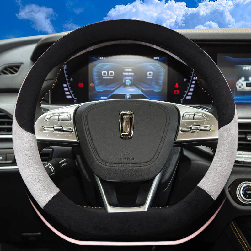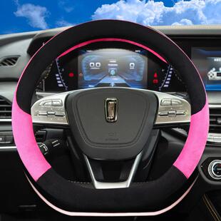 四季 汽车翻毛方向盘套高级感麂皮绒吸汗防滑把套毛绒可爱 通用新款