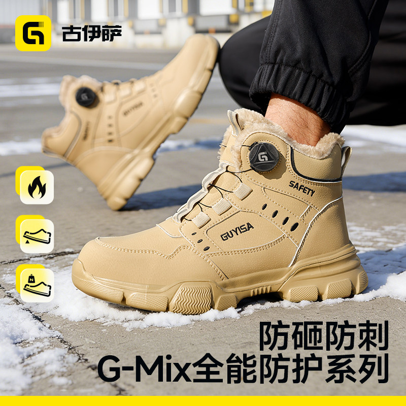 冬季 古伊萨劳保鞋 男款 男士 加绒高帮防砸防刺穿钢头带钢板工作棉鞋由