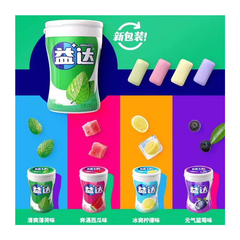 草莓蜜瓜混合糖果清新口气零食 益达口香糖无糖木糖醇约70粒大瓶装