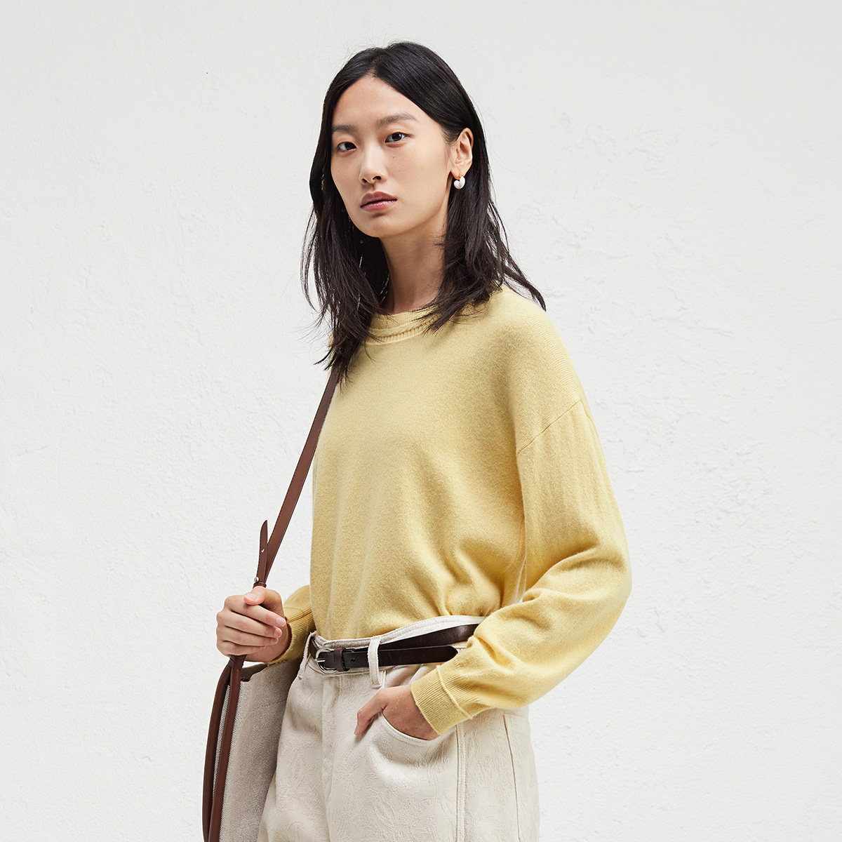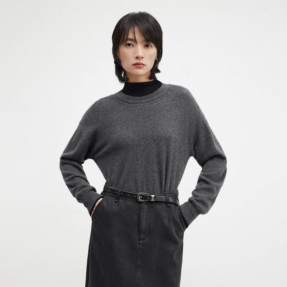 播奥莱商场同款 圆领针织衫 女冬慵懒风毛衣BDR4SD3822 100%羊绒